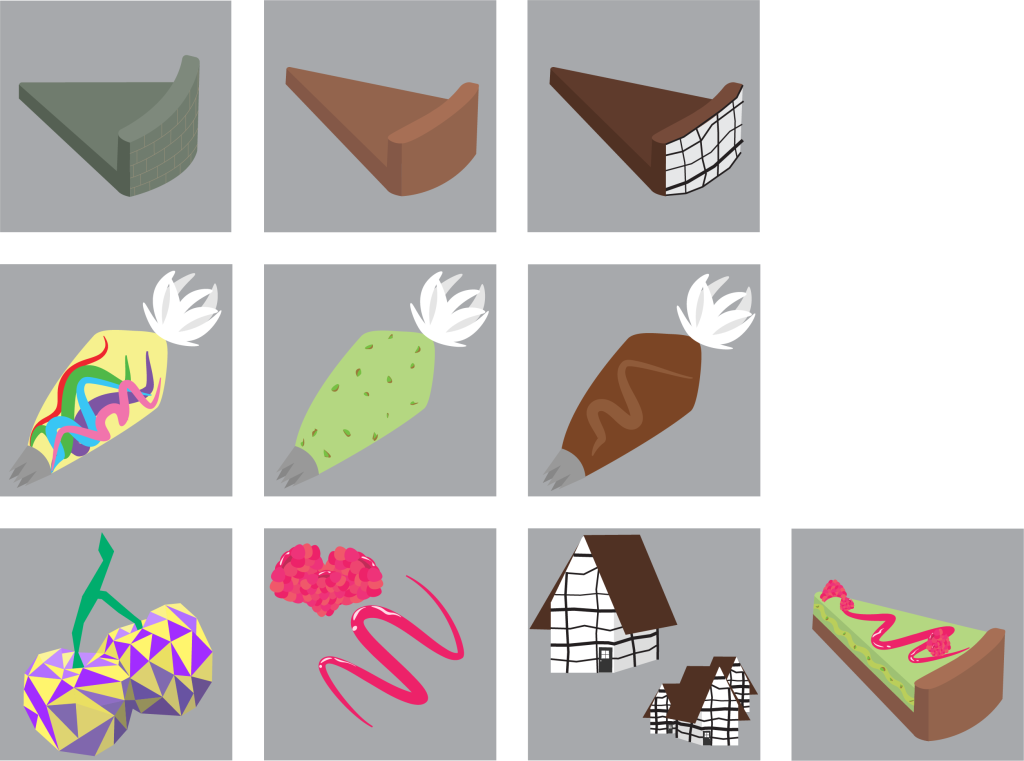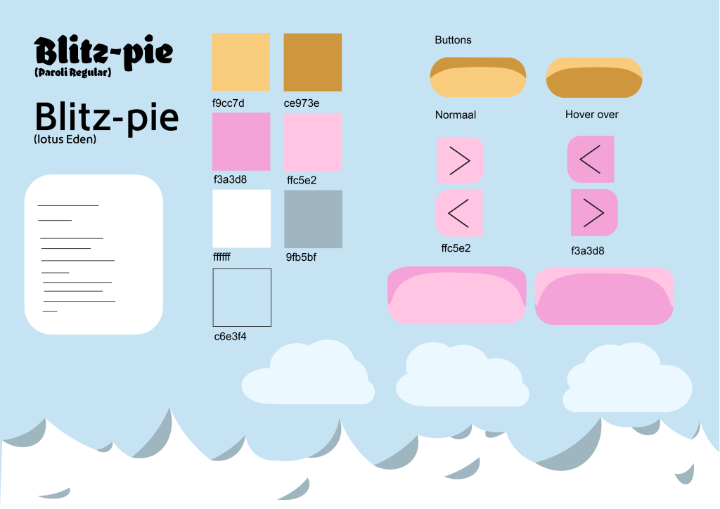 Dit zijn de uitgewerkte ingrediënten en een uitgewerkte taartstuk samen met de styleboard van mijn app.